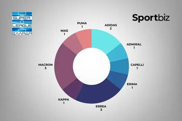 Στη Super League 1 δραστηριοποιούνται συνολικά εννέα εταιρείες – ADIDAS, ADMIRAL, CAPELLI, ERIMA, ERREA, KAPPA, MACRON, NIKE και PUMA – συνδυάζοντας παγκόσμια brands αθλητικού εξοπλισμού με ευρωπαϊκές εταιρείες που έχουν ισχυρή και διαχρονική παρουσία στο ποδόσφαιρο. Η adidas ξεχωρίζει σε επίπεδο κορυφής, έχοντας συνεργασία με δύο από τους συλλόγους του λεγόμενου big-4, τους «αιώνιους» του ελληνικού ποδοσφαίρου, Παναθηναϊκό & Ολυμπιακό. Η ΑΕΚ ακολουθεί διαφορετική στρατηγική, συνεργαζόμενη με τη Nike, ενώ ο ΠΑΟΚ έχει επιλέξει εδώ και αρκετά χρόνια τη Macron.