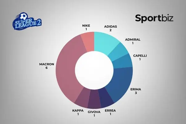 Στη Super League 2, το τοπίο παραμένει σε μεγάλο βαθμό παρόμοιο, με σχεδόν τις ίδιες εταιρείες να δίνουν το «παρών». Η βασική διαφοροποίηση εντοπίζεται στην απουσία της Puma και την είσοδο της Givova. Εδώ, η Macron κυριαρχεί ξεκάθαρα, με έξι ομάδες, ενώ στη δεύτερη θέση ακολουθεί η Erima με τρεις συνεργασίες, επιβεβαιώνοντας ότι η δεύτερη κατηγορία λειτουργεί ως χώρος όγκου και σταθερής παρουσίας για τα brands.