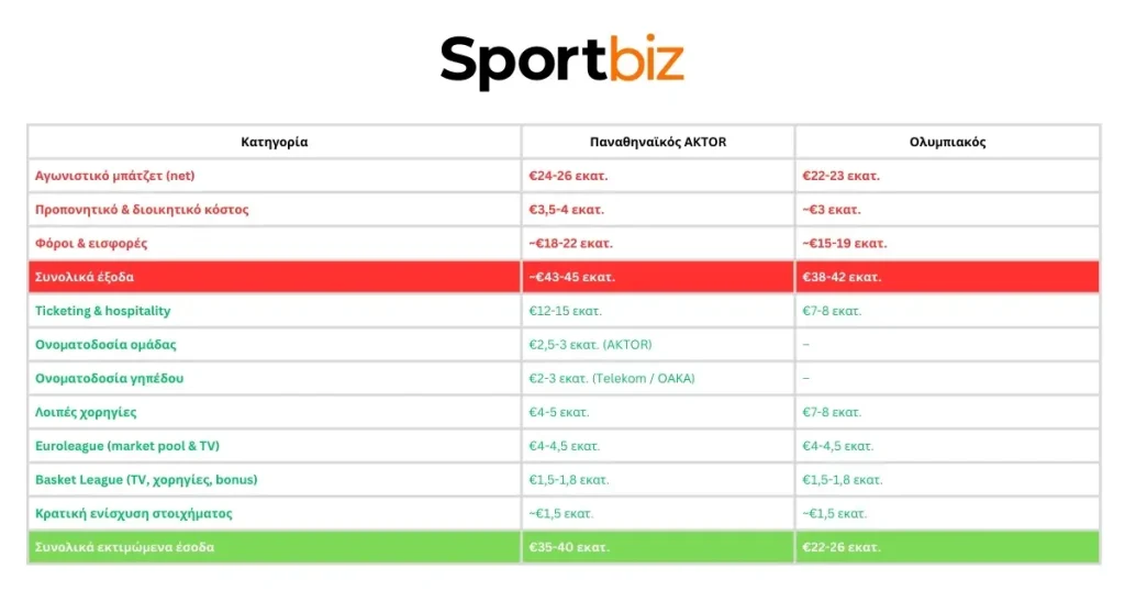 Μέσα από τα διαθέσιμα οικονομικά στοιχεία, ευρωπαϊκά ρεπορτάζ και εκτιμήσεις της αγοράς, επιχειρείται μια χαρτογράφηση δύο διαφορετικών προσεγγίσεων, οι οποίες αντανακλούν τόσο τις στρατηγικές επιλογές των συλλόγων όσο και τις συνθήκες που διαμορφώνονται στο περιβάλλον της Euroleague.