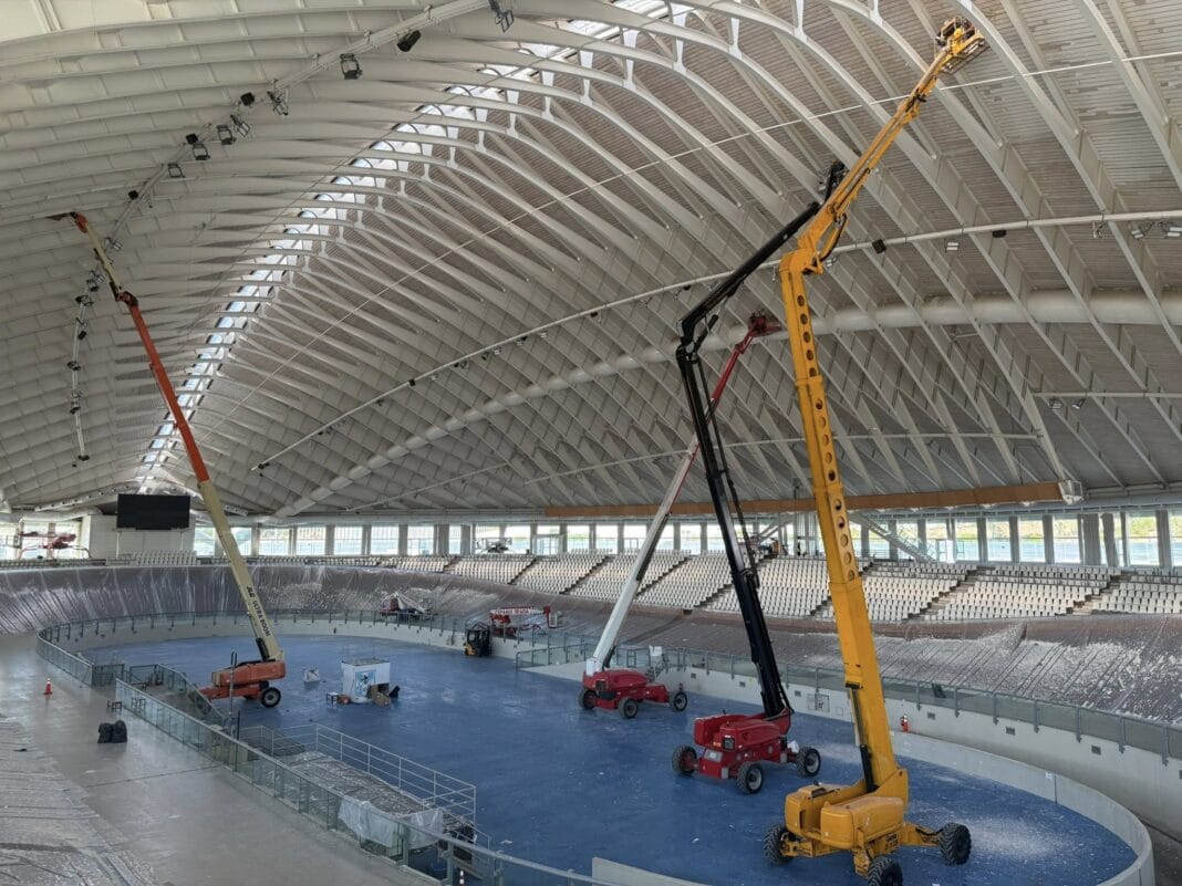 Στο Ολυμπιακό Ποδηλατοδρόμιο υλοποιείται η αποξήλωση του παλαιού χρώματος της στέγης Καλατράβα, ο καθαρισμός των υδρορροών, η συντήρηση μεταλλικών στοιχείων και η συνολική ανακατασκευή της αγωνιστικής πίστας. Παράλληλα, η τοποθέτηση εξειδικευμένων επιταχυνσιογράφων επιτρέπει την παρακολούθηση τάσεων και παραμορφώσεων στα μεταλλικά στοιχεία και τις καλωδιώσεις του στεγάστρου, εισάγοντας μια καινοτόμο μέθοδο διαρκούς τεχνικής εποπτείας.