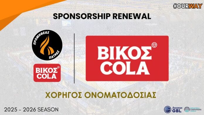 Για δεύτερη χρονιά θα παραμείνει η “Βίκος Cola” χορηγός ονοματοδοσίας της πατρινής ΚΑΕ, όπως ανακοίνωσε ο Προμηθέας Πάτρας.